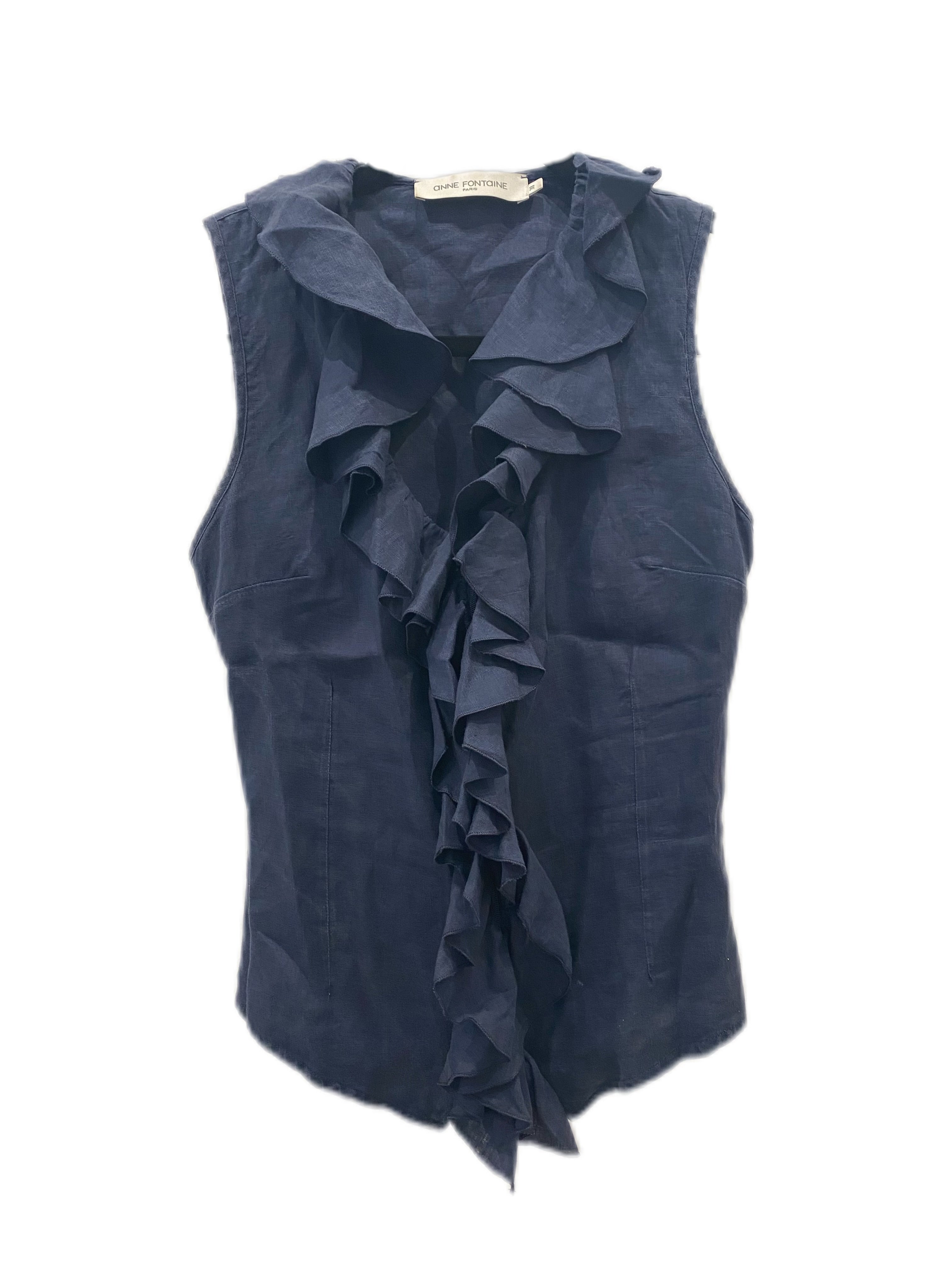 Get ready to turn heads in this elegant Anne Fontaine navy blue ruffle top. Made from high-quality fabric, this top features beautiful ruffle detailing that adds a touch of sophistication to any outfit. Perfect for both formal and casual occasions, this top will be a staple in your wardrobe.