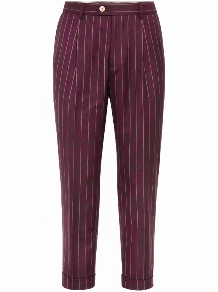 Expertly tailored from luxurious wool, these Brunello Cucinelli trousers are designed for a sleek and tapered fit. A versatile burgundy hue adds a touch of sophistication to any outfit. Perfect for the discerning gentleman seeking both style and comfort in their wardrobe.