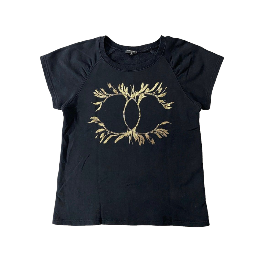 This Chanel 2018 black graphic print shirt is a stylish and versatile addition to any wardrobe. Its bold graphic print adds interest to any outfit, while its high-quality construction ensures long-lasting wear. Made from premium materials, this shirt offers both comfort and style. Elevate your look with this timeless piece.