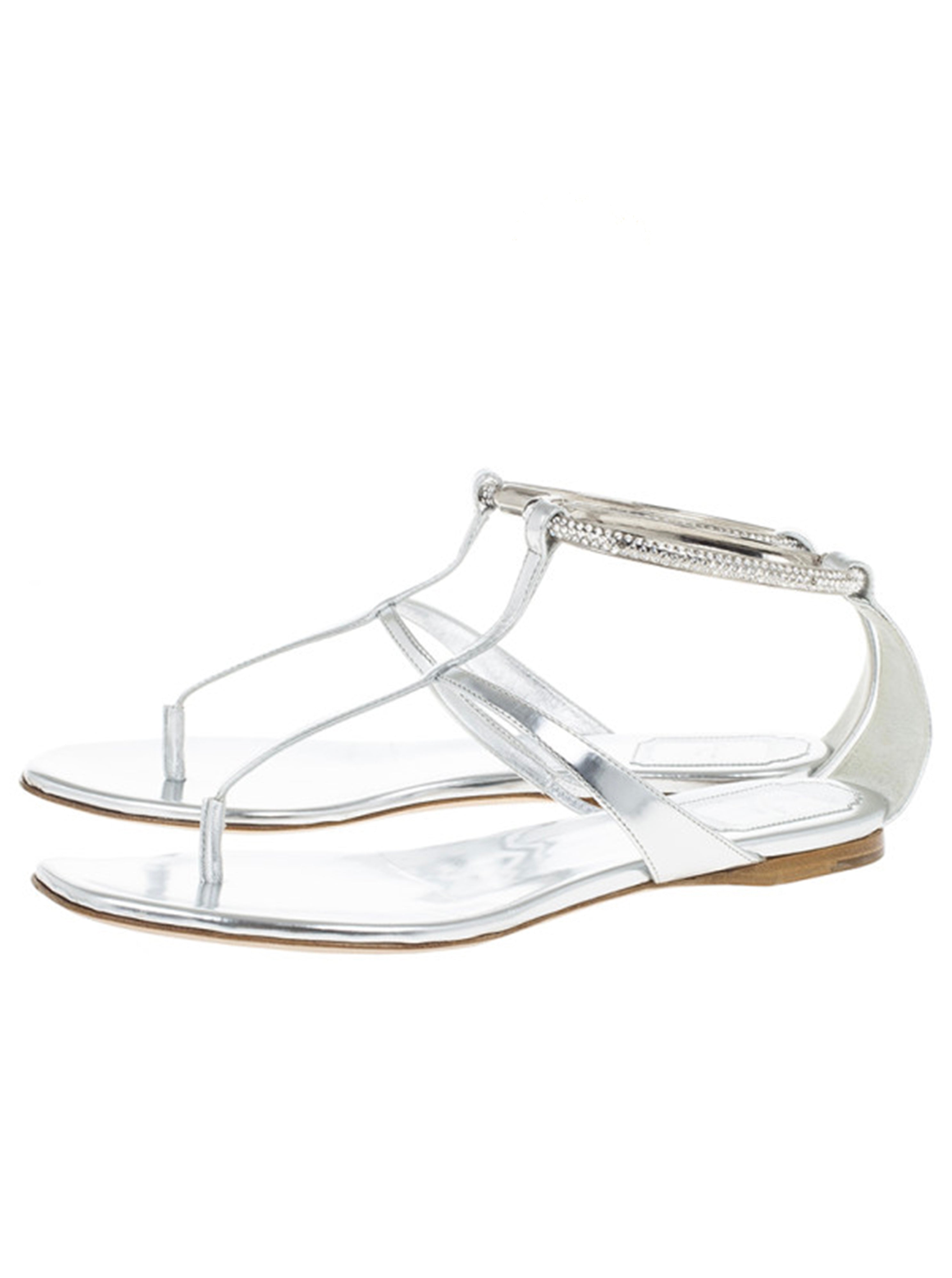 Experience luxury and style with Dior New silver sandals. With their sleek design and silver finish, these sandals are the perfect blend of fashion and functionality. Made with high-quality materials, you can count on their durability and comfort. Elevate your wardrobe with these stunning sandals.
