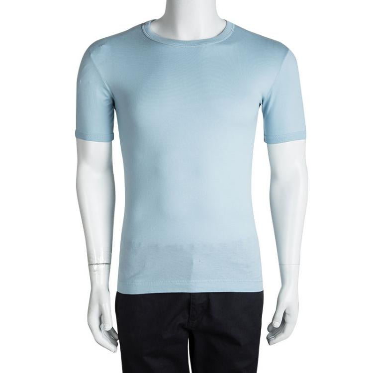 This Dolce & Gabbana light blue casual t-shirt is the perfect combination of style and comfort. Made from high-quality materials, it offers a relaxed fit and effortless style. The light blue color adds a touch of sophistication to any casual outfit. Experience luxury fashion with this must-have t-shirt.