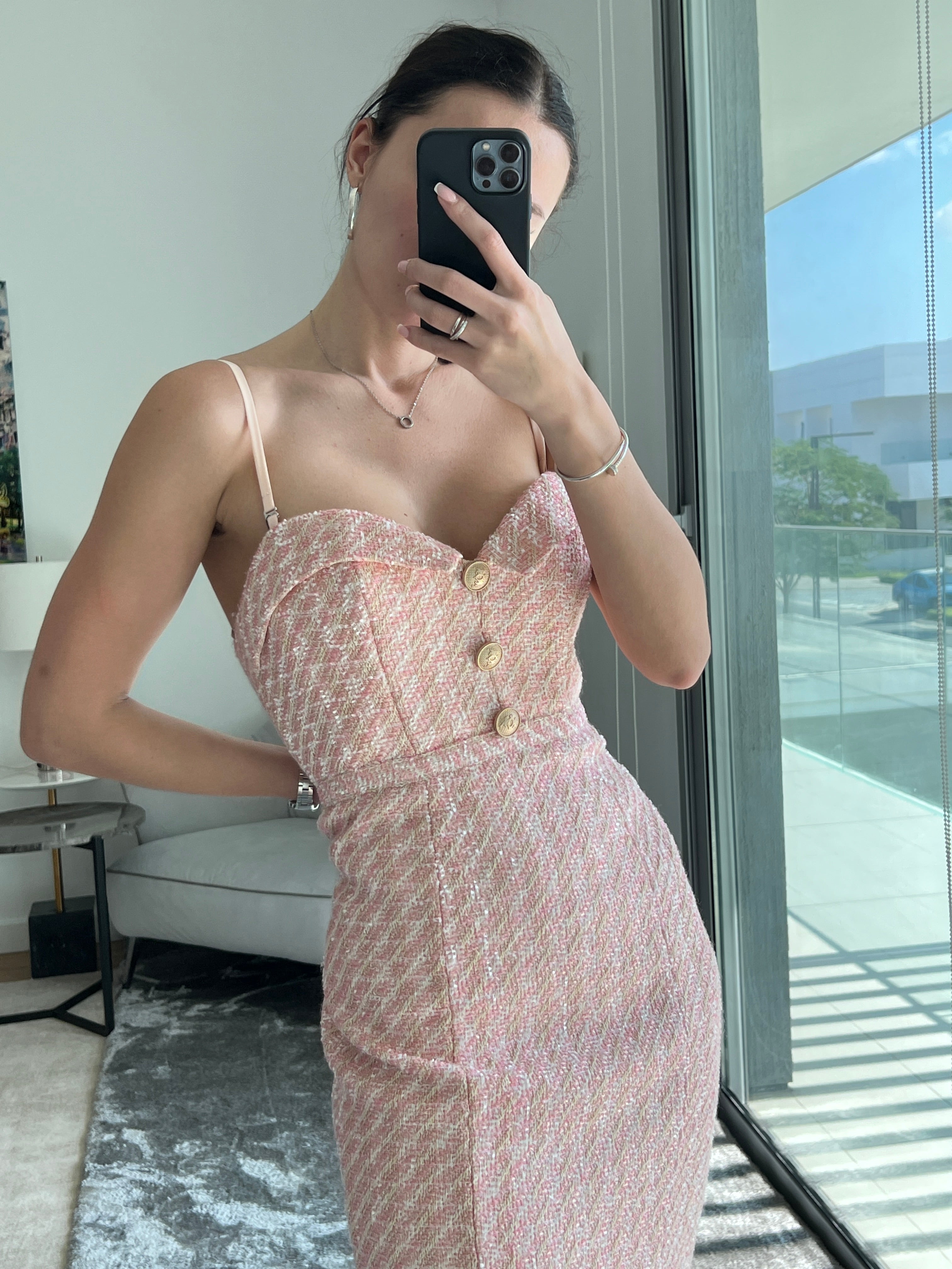 Expertly crafted by ELLE ZEITOUNE, the Midi Dress exudes both elegance and sophistication. The form-fitting design accentuates your curves while the high-quality fabric provides exceptional comfort. Elevate your style and turn heads at any event with this timeless piece.