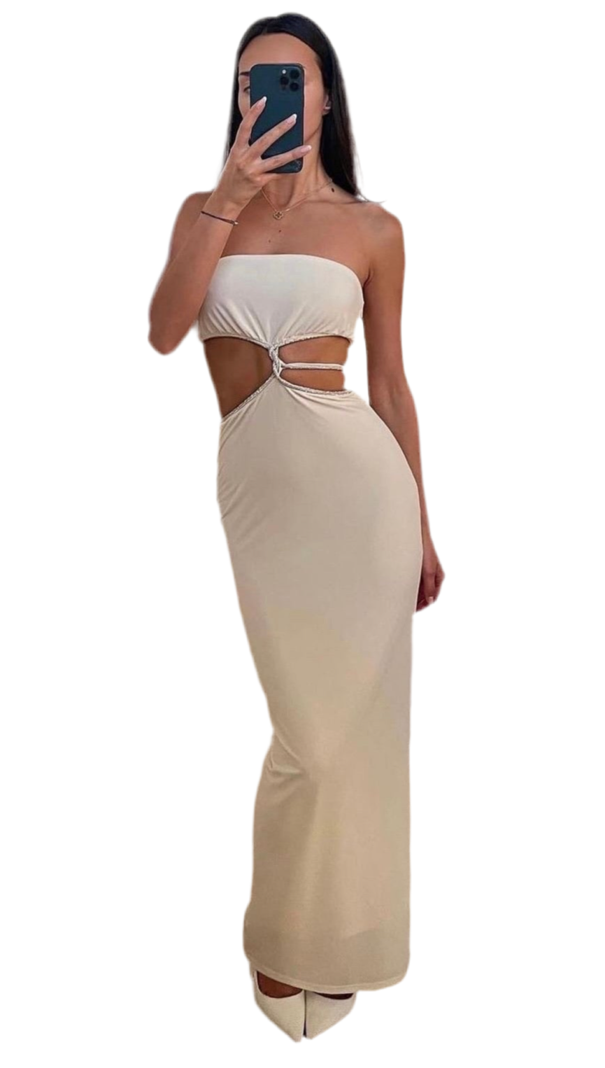 MESHKI waist cut out white long dress
