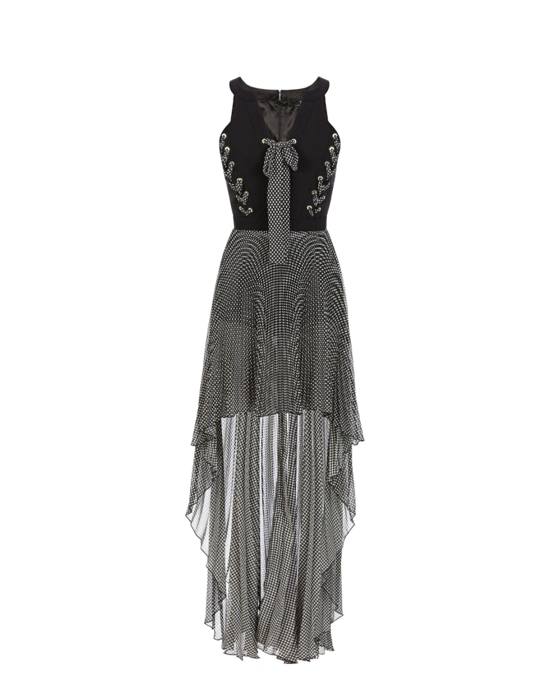 Expertly designed by Elisabetta Franchi, this elegant dress features a unique lace-up design and contrasting short front and long back. Perfect for any occasion, this dress exudes sophistication and style. Elevate your wardrobe with this stunning piece.