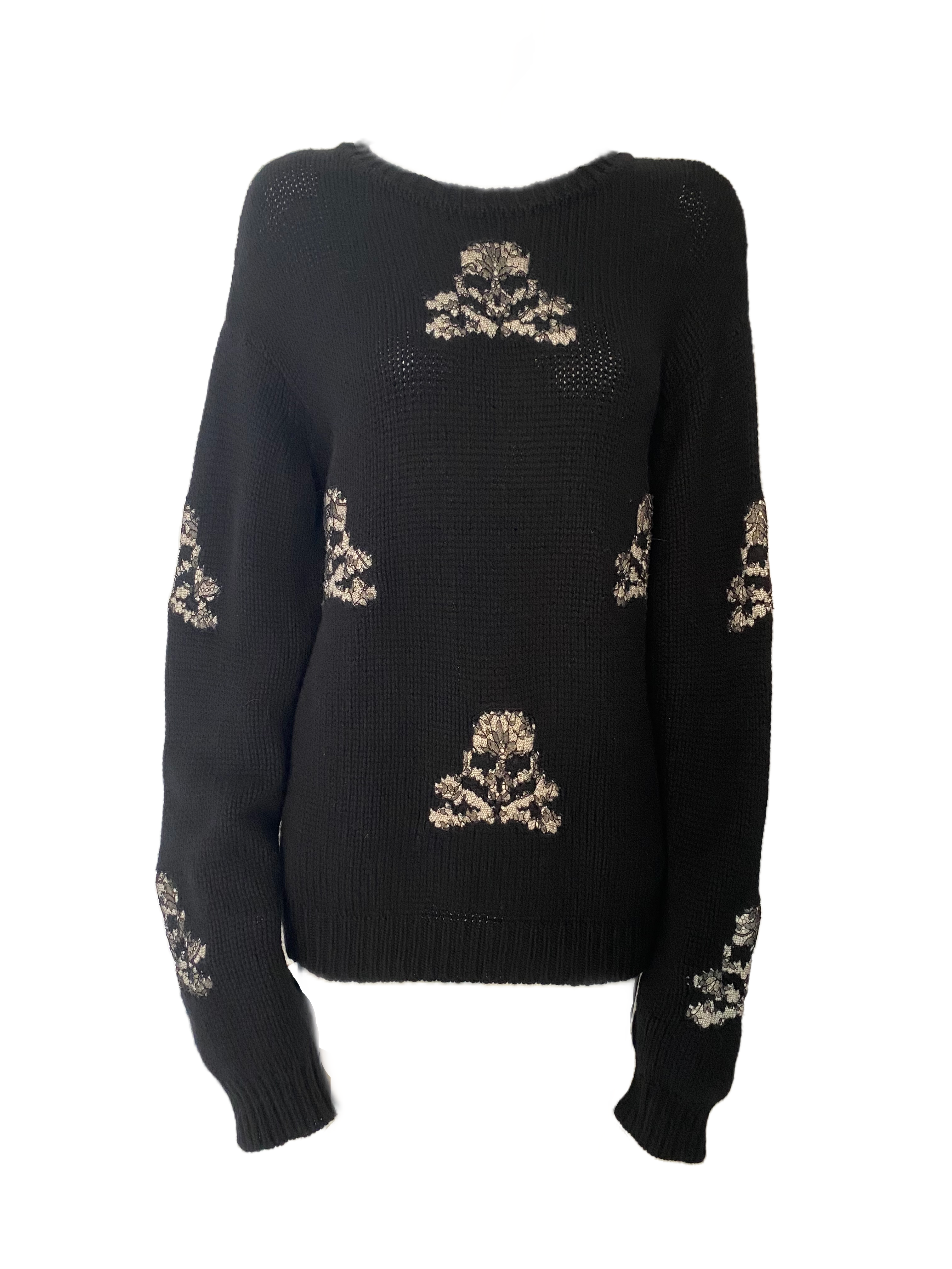 This Ermanno Scervino black jumper features an edgy skull design, adding a touch of punk to your wardrobe. Made from high-quality materials, this jumper will keep you stylish and warm during the cooler months. Show off your unique style with this statement piece.