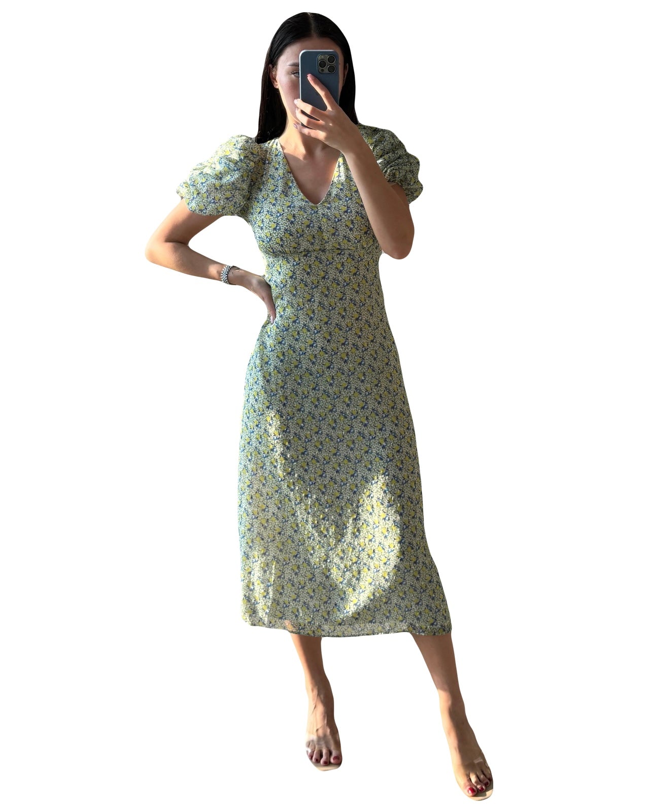 Introducing the Exquise Green floral long Dress, a stunning addition to your wardrobe. Made with high-quality materials and featuring a beautiful floral design, this dress is perfect for any occasion. Its elegant and flowy silhouette will make you stand out and its vibrant colors will brighten up your day. A must-have for any fashion-forward individual.