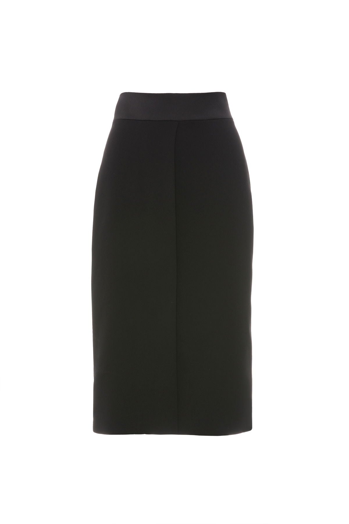 This professional GIZIA black pencil skirt features a stylish middle slit for added movement and comfort. Crafted with high-quality material, this skirt offers a sleek and elegant look for any business or formal occasion. The perfect blend of fashion and function.