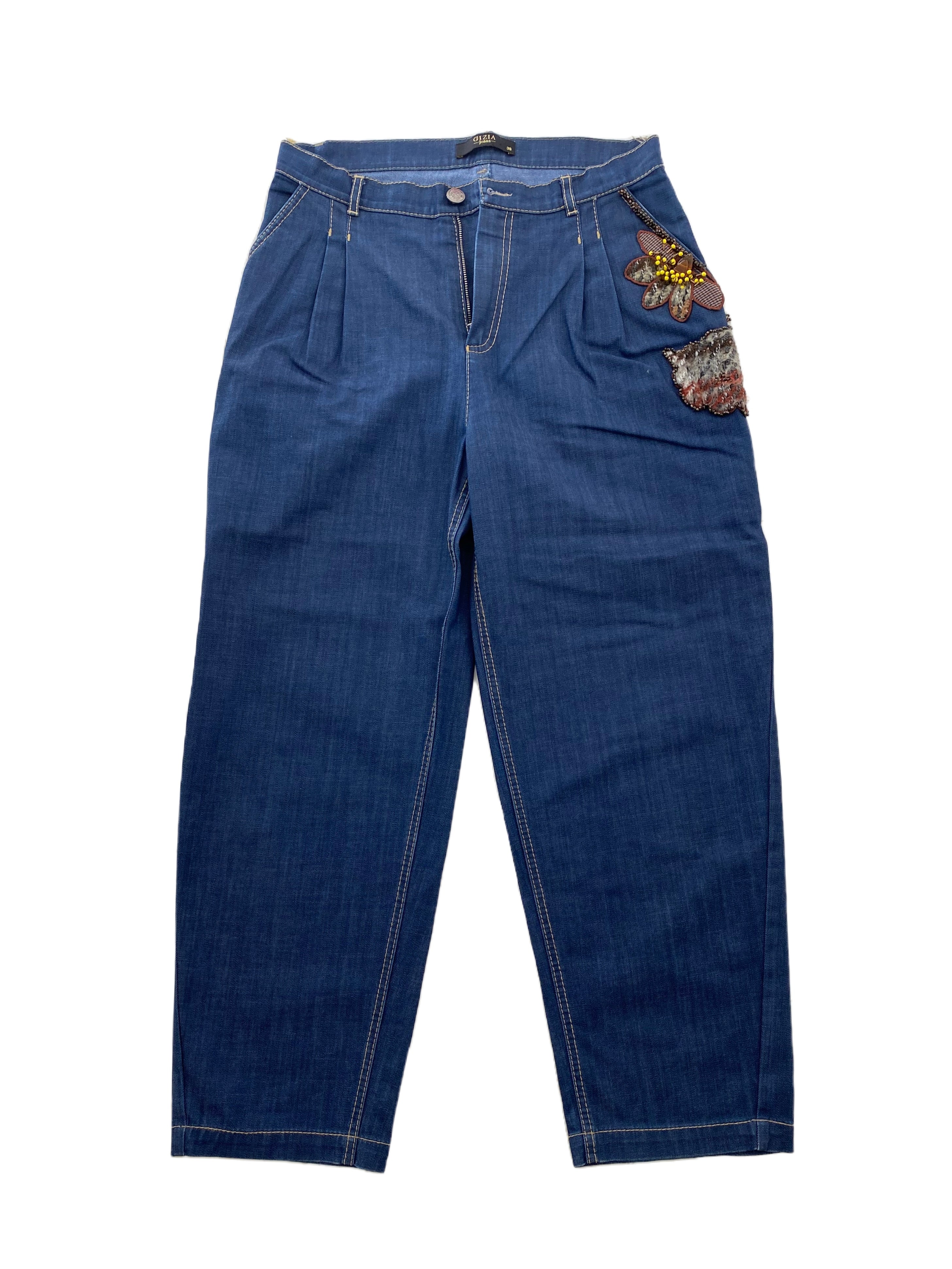 Stay in style with Gizia denim embroidered flower trousers. These trousers feature stunning embroidered flowers for a look that's both fashionable and unique. Made with high-quality denim, they offer comfort and durability for everyday wear. Elevate any outfit with these chic and versatile trousers.