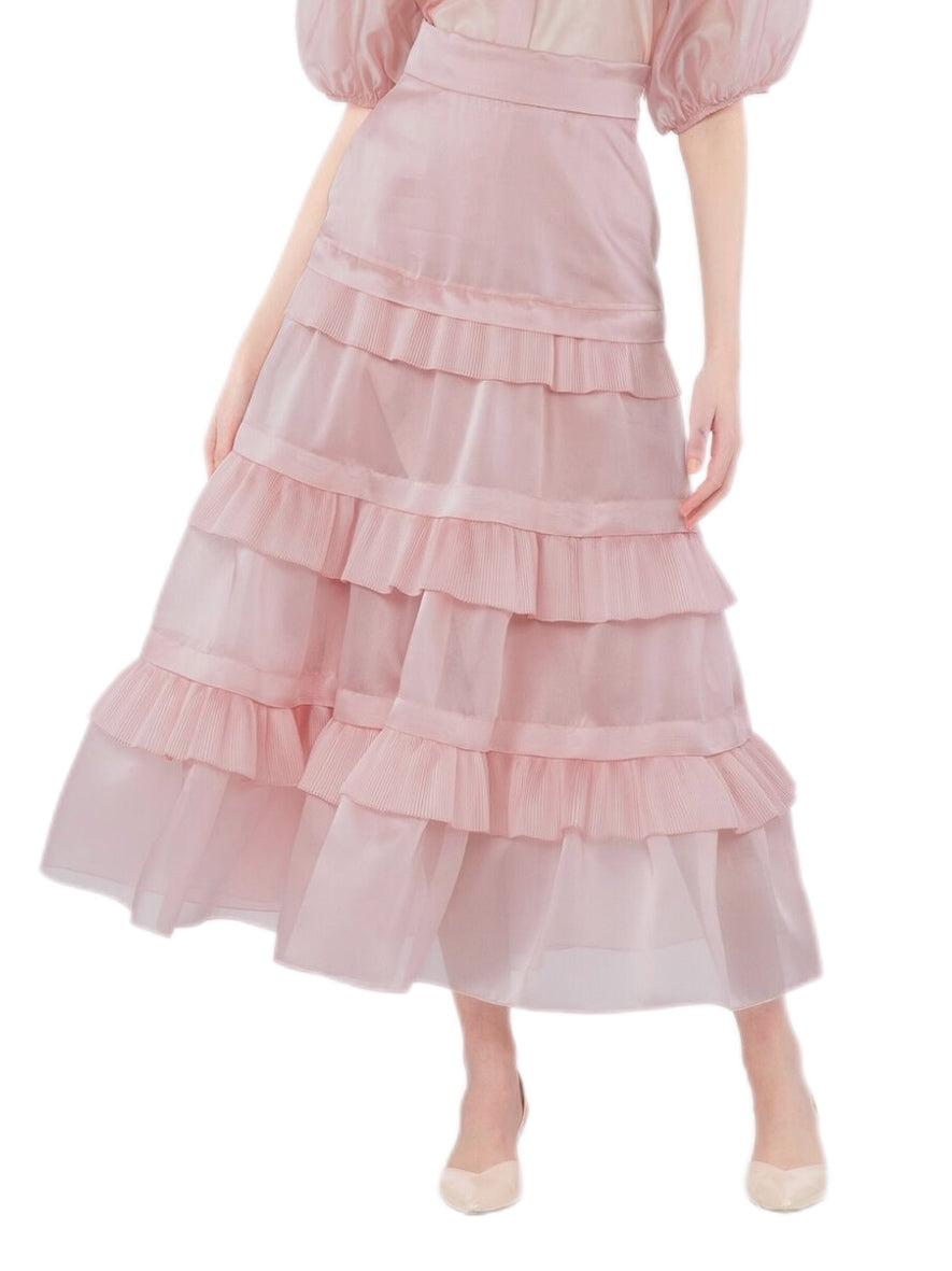 Get ready to turn heads with our Gizia pink pleated frill midi skirt! This stunning piece features feminine pleats and delicate frills that will make you feel effortlessly chic. Perfect for any occasion, this skirt will elevate your style and leave a lasting impression.