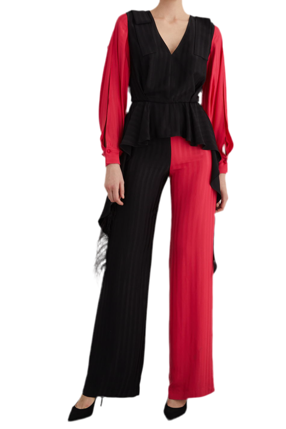 Effortlessly chic, the GIZIA Two-Tone Pleated Jumpsuit exudes sophistication. Made with high-quality materials, this jumpsuit features a flattering pleated design and a two-tone color scheme. Perfect for any occasion, it offers both style and comfort. Elevate your wardrobe with this must-have piece.