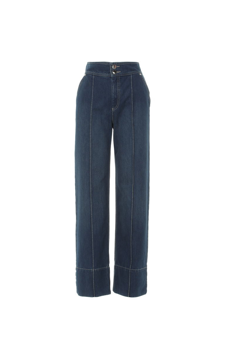 Elevate your style with the GIZIA Wide Leg Denim Trousers. Crafted with high-quality materials, these trousers provide a comfortable fit and a sleek look. The wide leg design elongates your legs while the durable denim fabric ensures long-lasting wear. Perfect for any occasion, elevate your wardrobe with these stylish trousers.