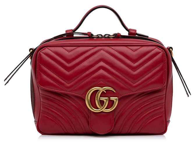 This Gucci shoulder bag is a luxurious addition to any outfit. Crafted in a vibrant red color and designed with matelasse leather, it exudes elegance and sophistication. It features a spacious interior and a stylish gold-tone chain strap for added convenience and style. Upgrade your wardrobe with this timeless piece.