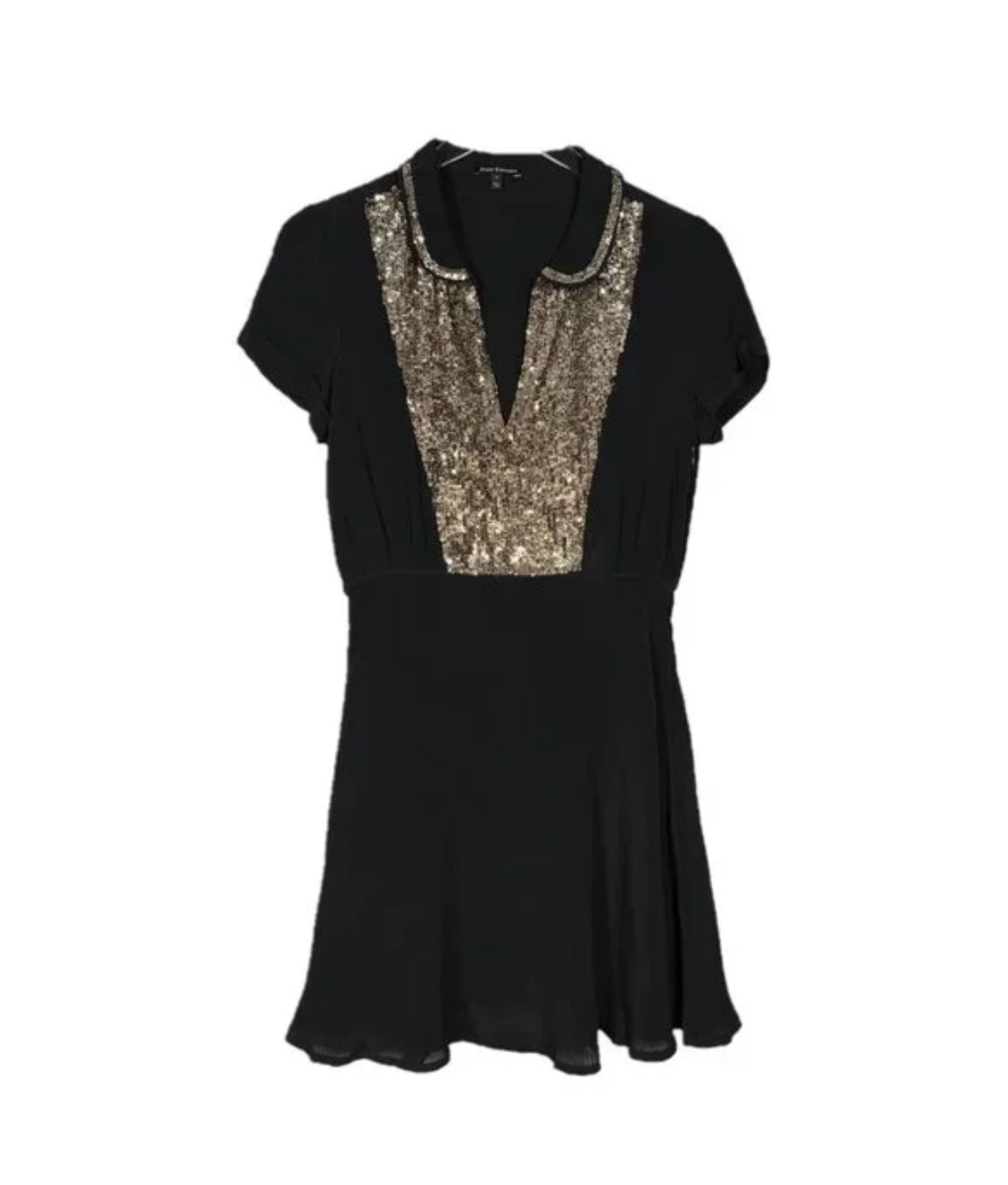 Indulge in luxury and glamour with the Juicy Couture black and gold sequin mini dress. Designed with intricate sequin detailing, this dress exudes elegance and sophistication. Crafted by industry experts, this dress is a statement piece that guarantees to turn heads at any event.