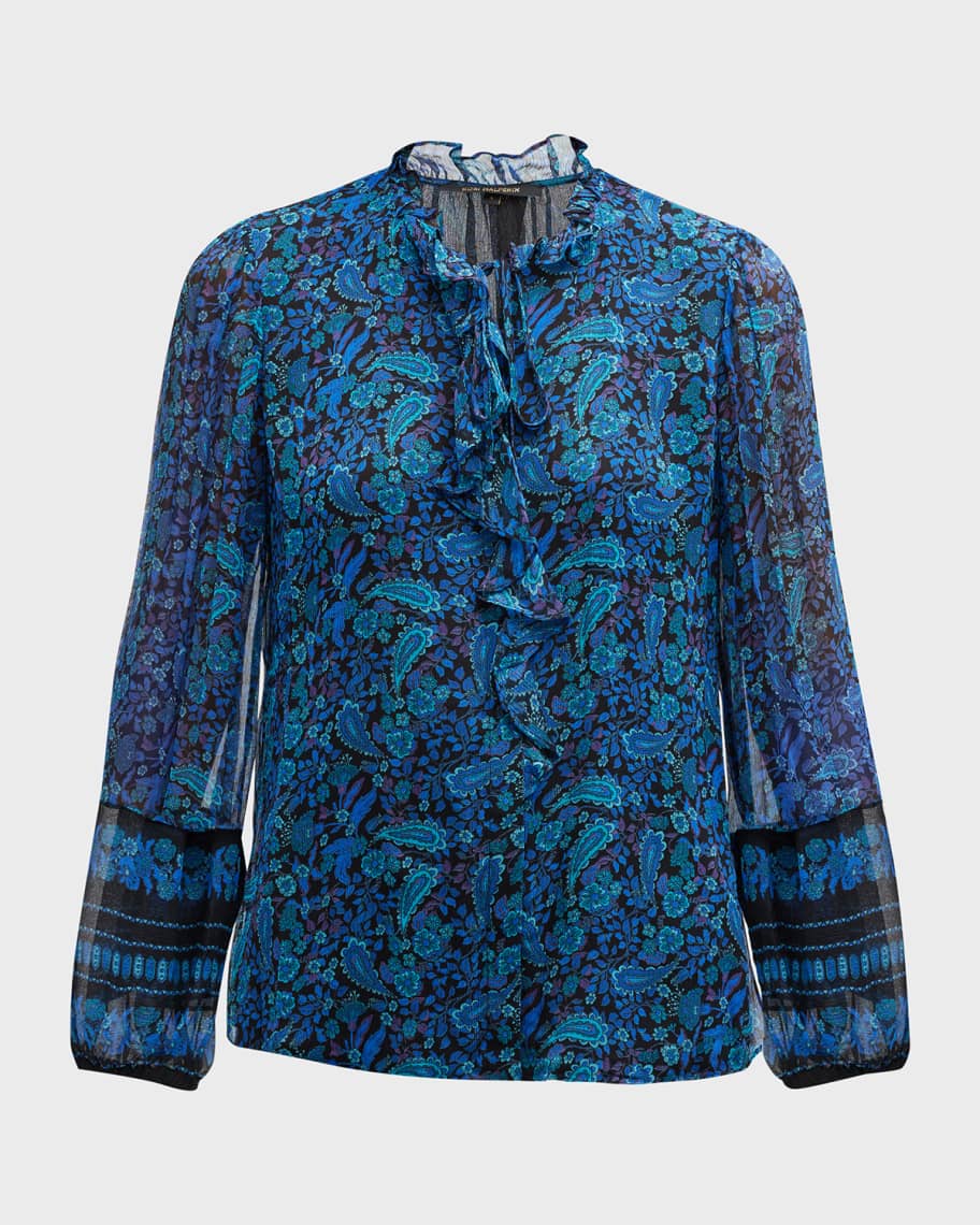Discover the elevated elegance of the Kobi Halperin Jasper Paisley Printed Blouse. Made with luxurious materials and expert craftsmanship, this blouse features a unique paisley print that adds a touch of sophistication to any outfit. With its flattering fit and timeless design, the Kobi Halperin Jasper blouse is a must-have for every fashion-forward woman.