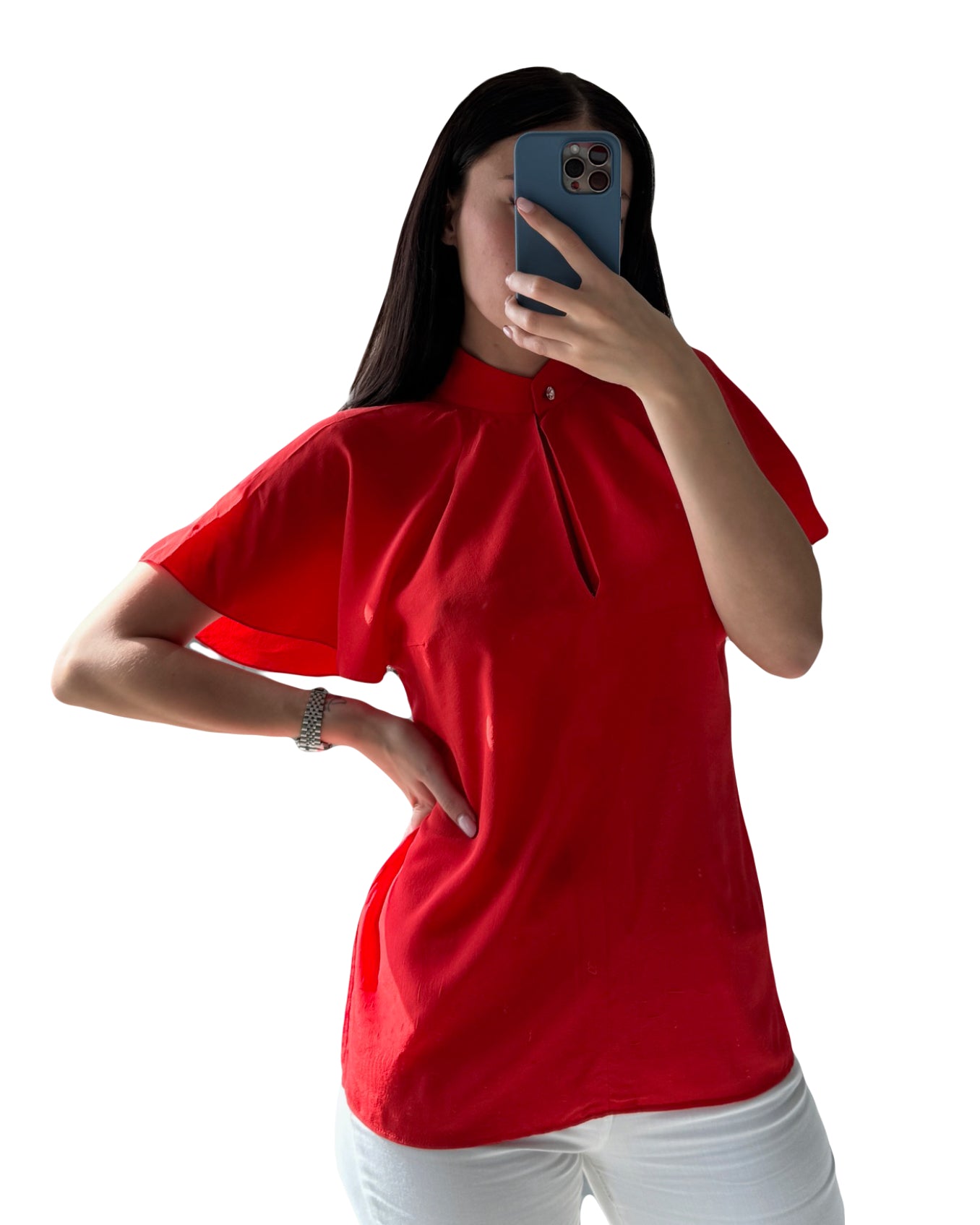Expertly crafted by Lanvin, this red blouse is the perfect addition to your wardrobe. Made with high-quality materials, it offers both comfort and style. The unique design and vibrant color make it a versatile piece that can be dressed up or down for any occasion. Elevate your style with this must-have Lanvin blouse.