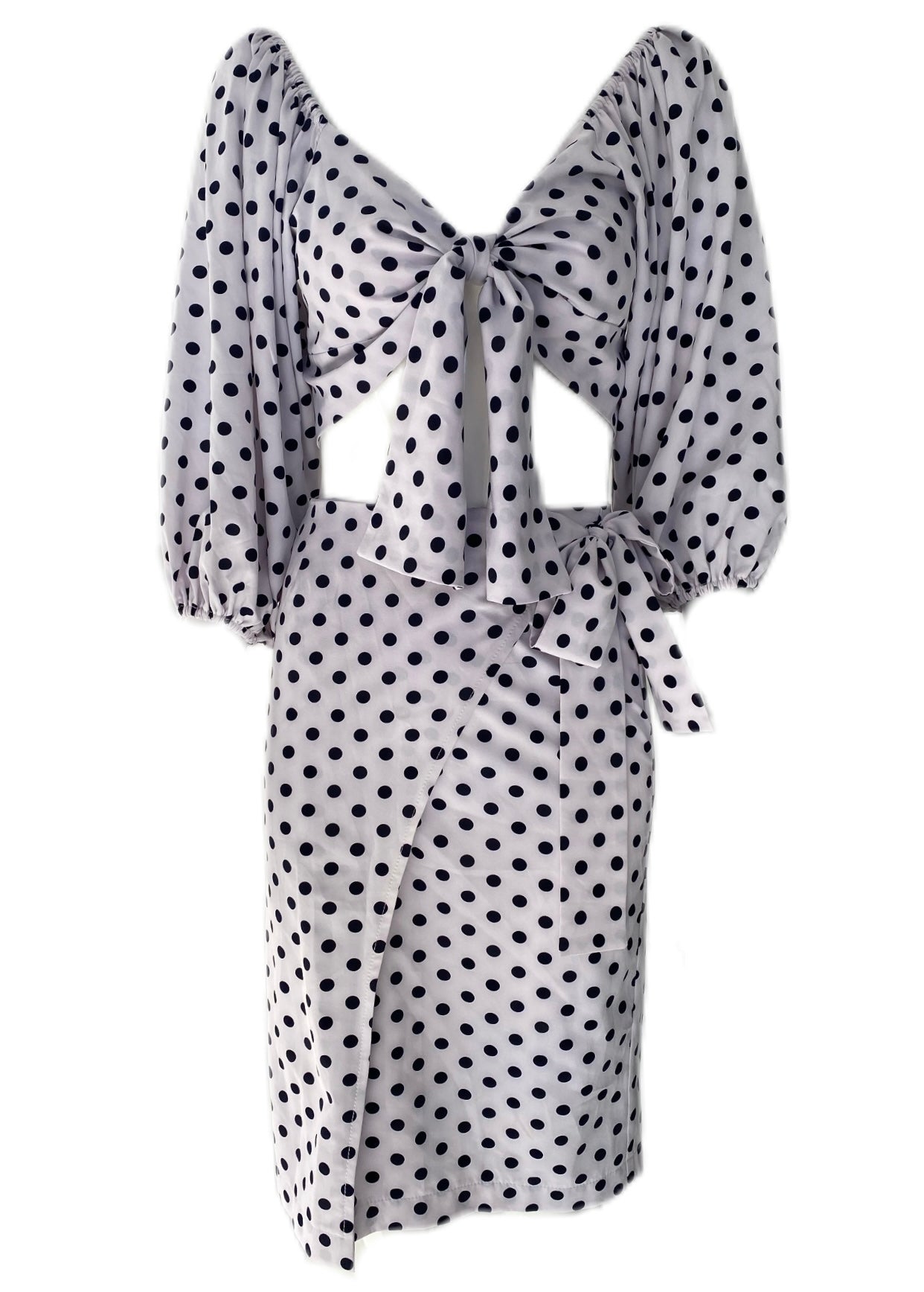 This Manera Odevatca polka dot set is both stylish and versatile. The wrap skirt and wrap top can be mixed and matched for a variety of looks. Made with high-quality materials, this set is perfect for any occasion.