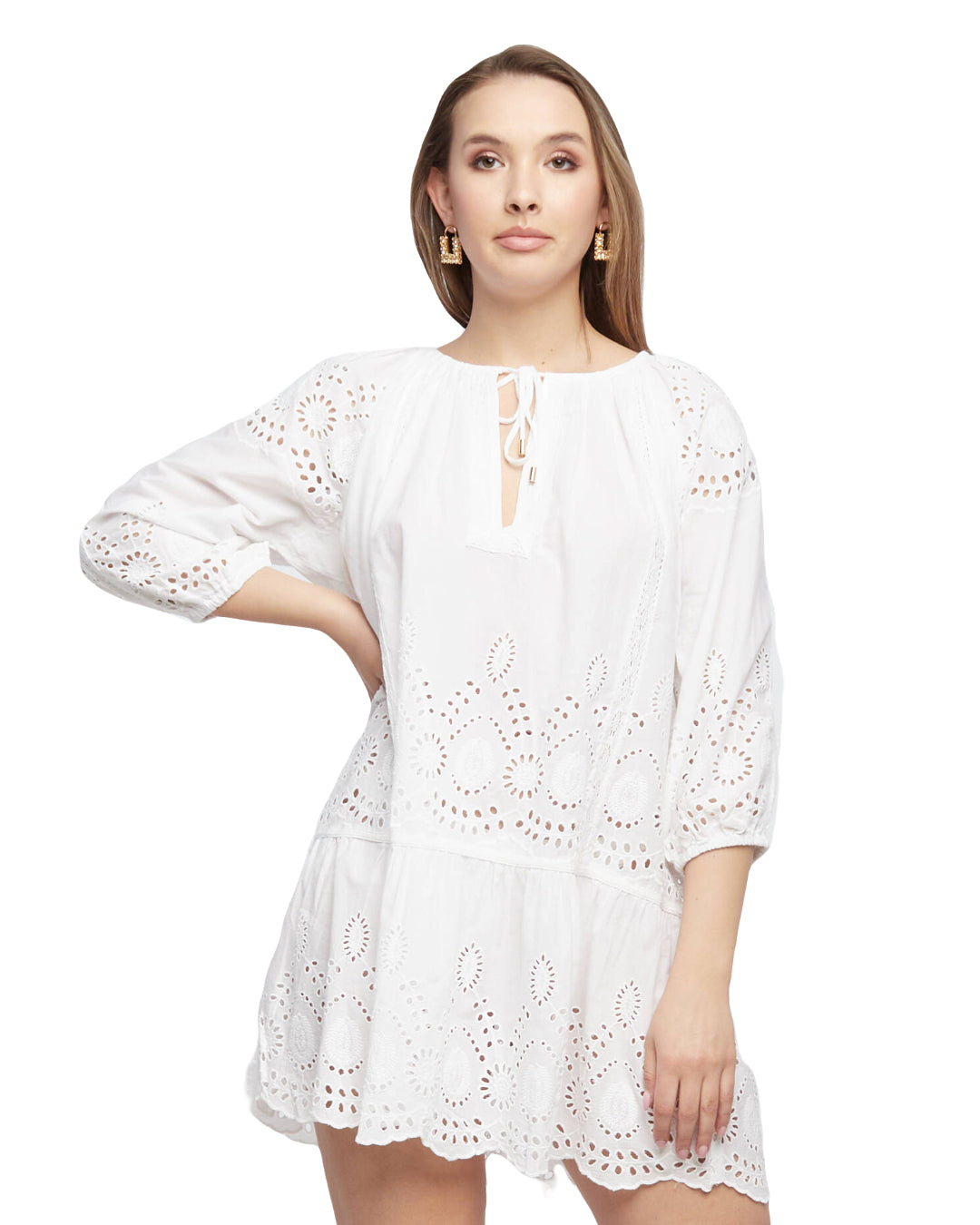Crafted with intricate embroidery, the Melissa Odabash Ashley dress exudes elegance and sophistication. The lightweight fabric drapes beautifully on the body, while the delicate details add a touch of femininity. Perfect for any occasion, this dress is a must-have for any fashion-forward wardrobe.