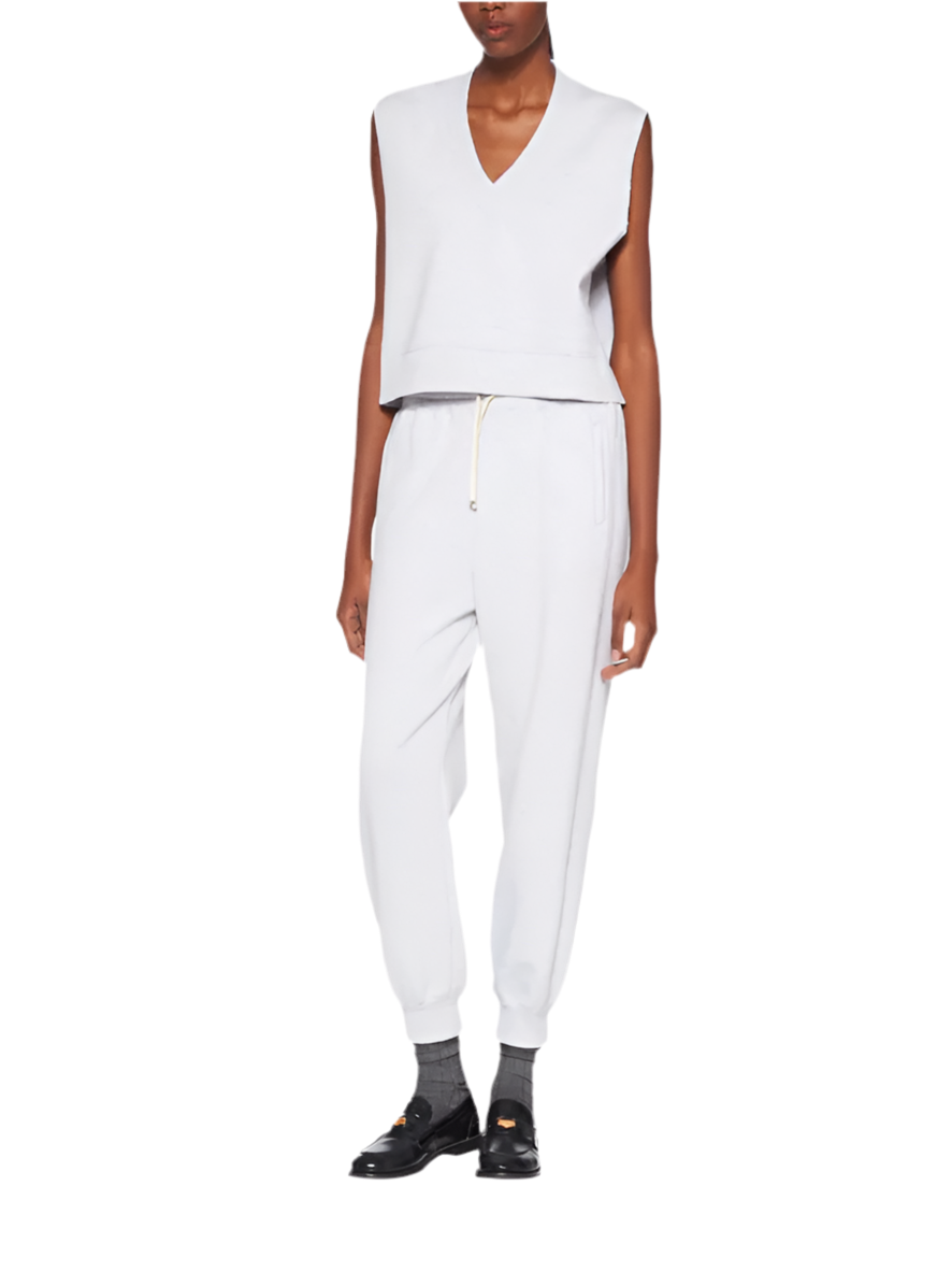 Upgrade your loungewear with the Miu Miu Embroidered Cotton Fleece Sweatshirt and Sweatpants Set. Made with soft and lightweight cotton fleece, this set provides comfort while the elegant embroidery adds a touch of sophistication. Perfect for cozy days at home or running errands, this set will elevate your casual look.