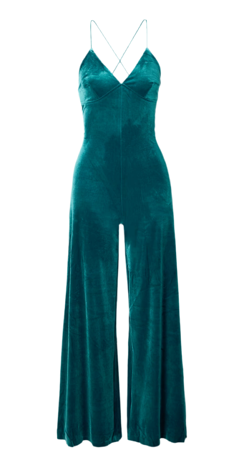 Crafted from luxurious stretch velvet, this Norma Kamali jumpsuit is both comfortable and stylish. The open back feature allows for breathability, while the blue color adds a touch of sophistication. Perfect for any occasion, this jumpsuit is a must-have for any fashion-forward individual.