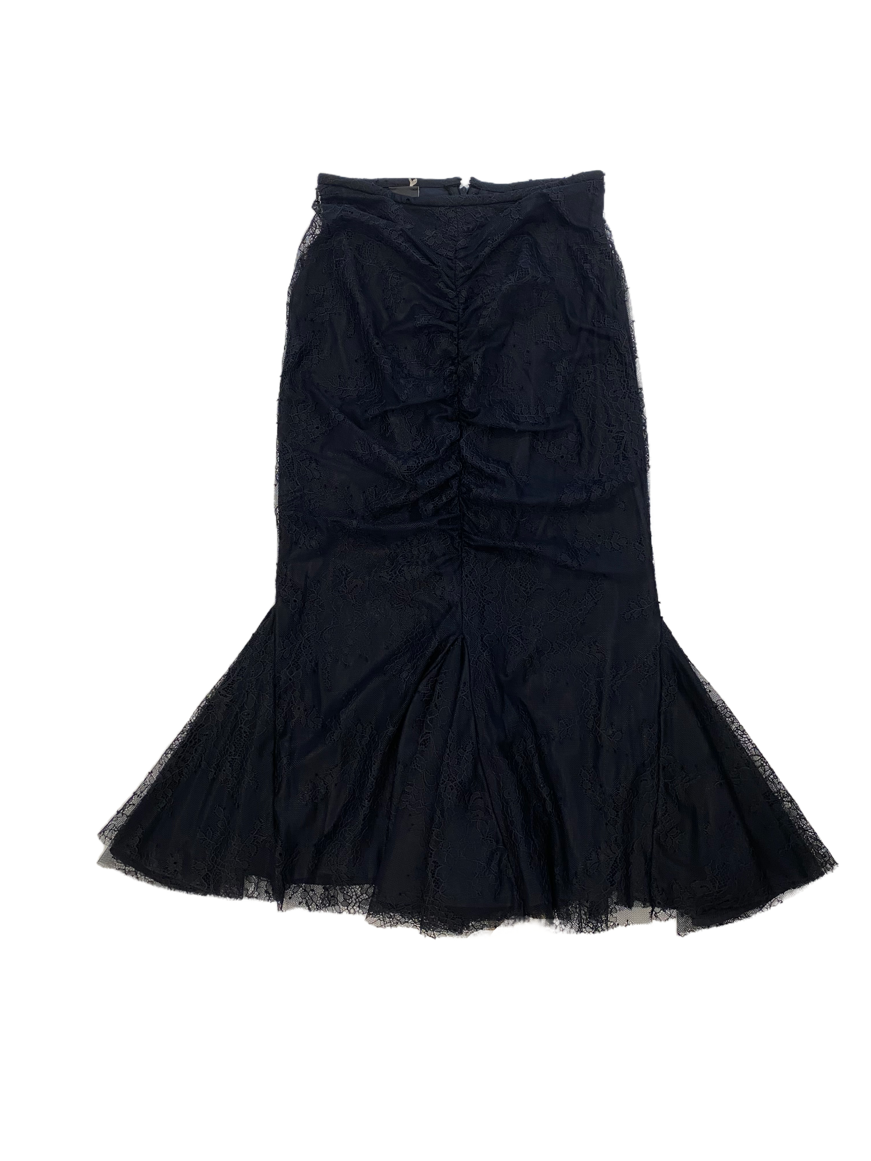 Expertly crafted with ruched lace, this Pinko midi skirt exudes elegance and versatility. The black color adds a touch of sophistication, perfect for any occasion. Embrace the feminine silhouette and elevate your wardrobe with this must-have piece.