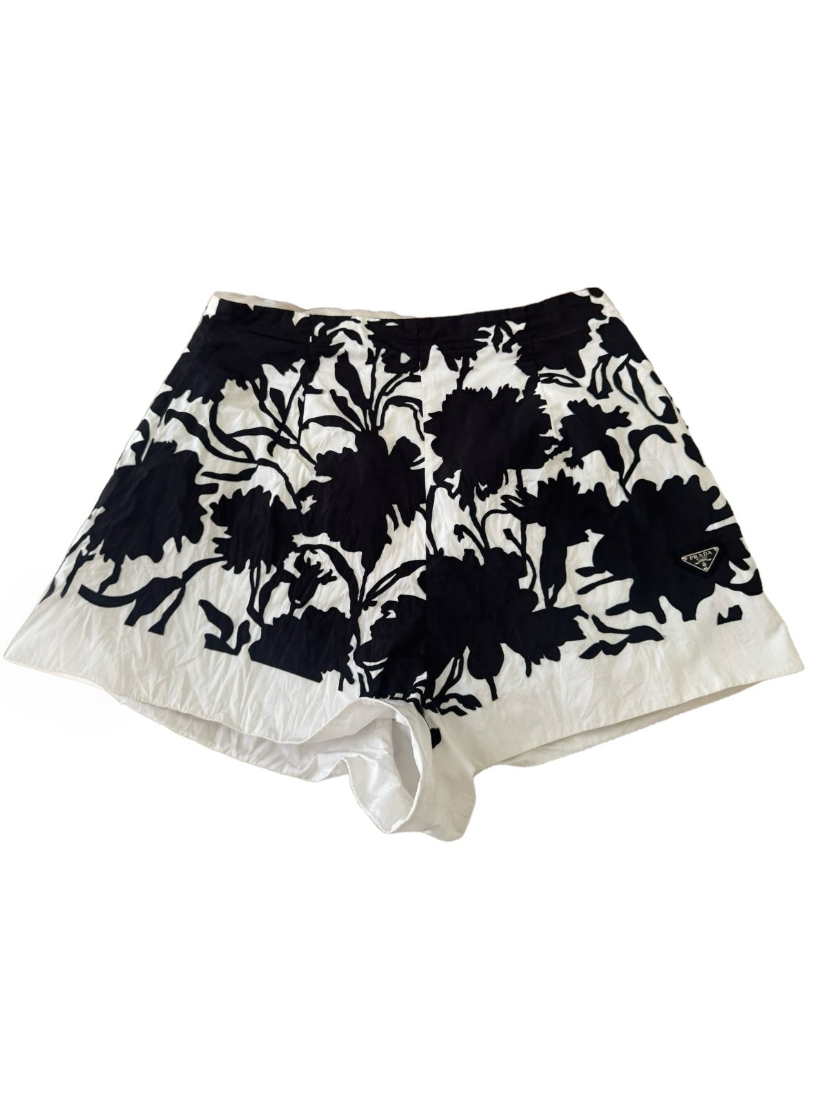 Expertly crafted by Prada, this black and white shorts set features a striking floral print. Perfect for making a fashionable statement, enjoy the luxurious comfort of this designer set.