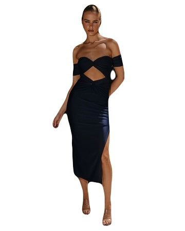 Stay in style with our Runaway dark blue off shoulder dress. Perfect for any occasion, this versatile dress features an elegant off shoulder design that will flatter any figure. Made from high-quality material, it offers both comfort and style. Experience the perfect blend of fashion and functionality with our Runaway dress.