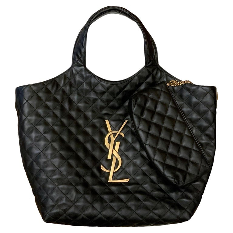 Expertly crafted by Saint Laurent, the Black Quilted Leather Maxi Icare Tote Bag exudes sophistication and style. Its spacious design allows for easy organization and the quilted leather adds a touch of luxury. The perfect accessory for any occasion.