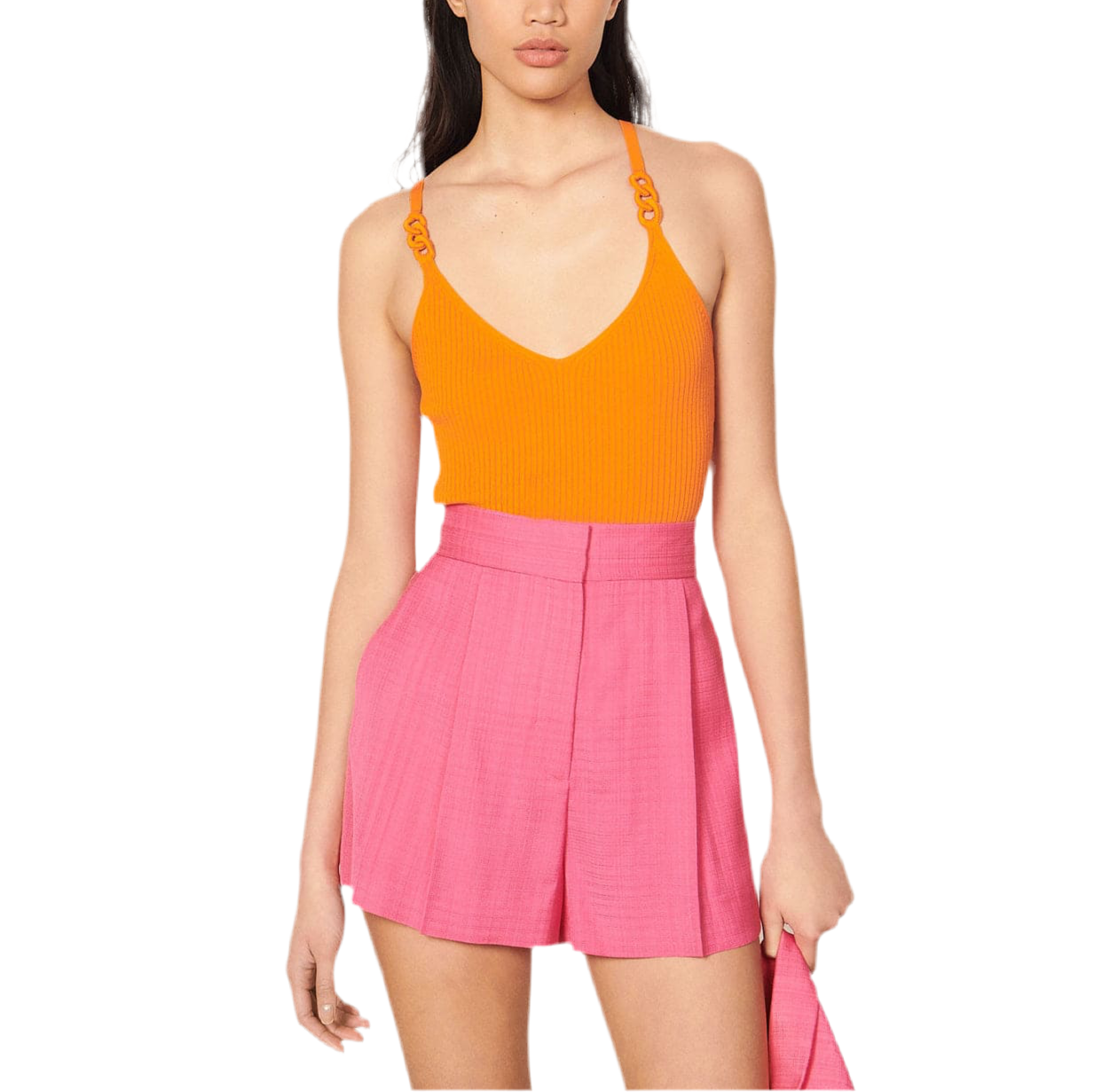 These Sandro pink high-waisted shorts are the perfect addition to any wardrobe. Made from high-quality materials, these shorts are comfortable, durable, and stylish. The high-waisted design accentuates the figure and can be easily dressed up or down. Elevate your summer style with these must-have shorts.