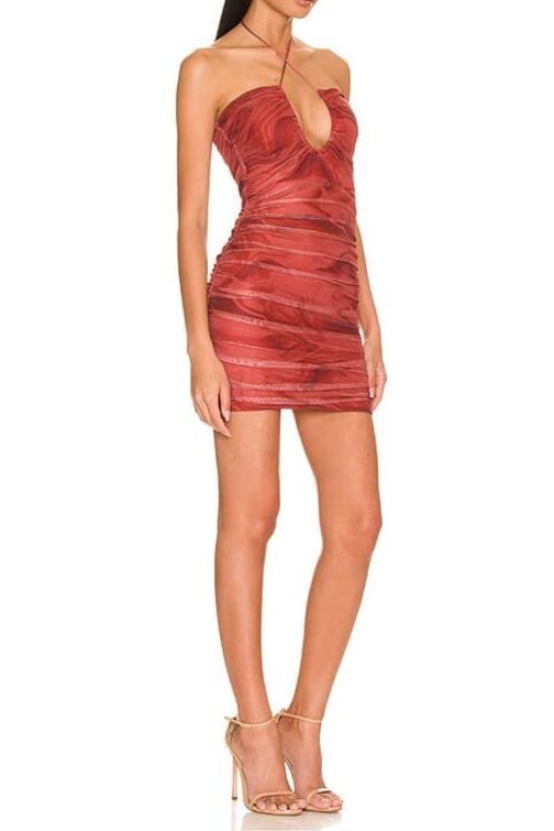 Upgrade your wardrobe with Superdown's Chelsey ruched mini dress, available in a vibrant red multi color. The ruched design offers a flattering fit, making it perfect for any occasion. Elevate your style with this must-have piece.