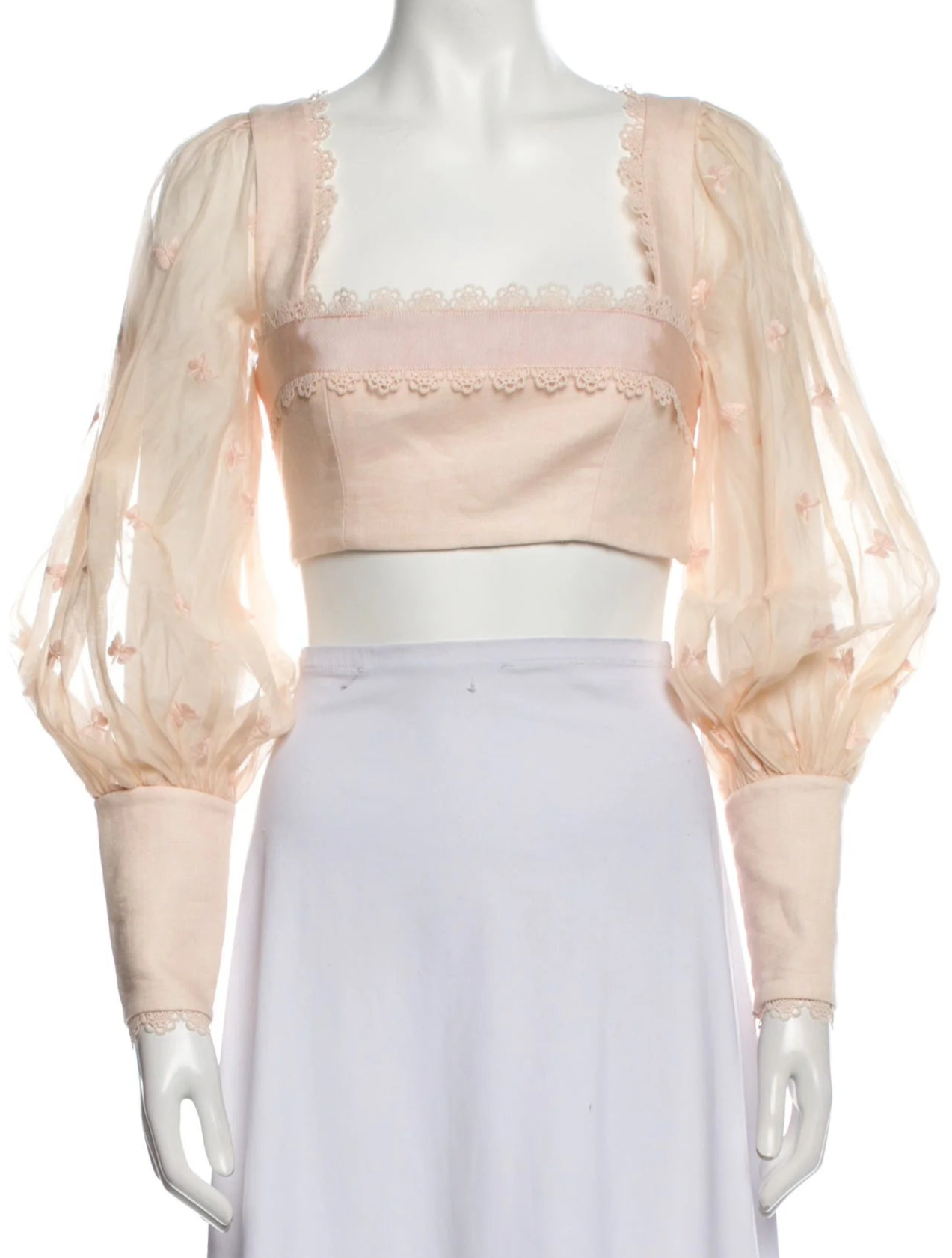 Zimmermann Butterflies Square Neckline Long-Sleeve Crop Top