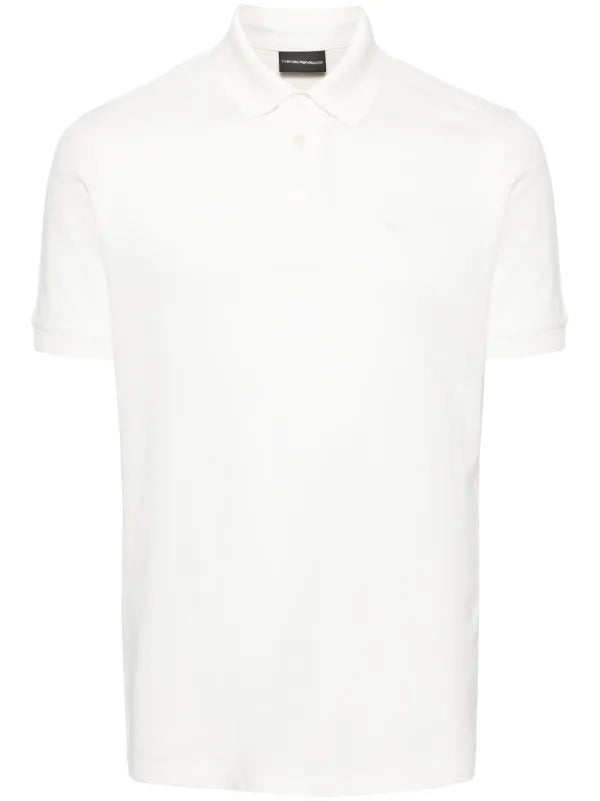 Expertly crafted, this Emporio Armani white polo shirt boasts superior quality and a sleek design. Made from premium fabric, it offers both style and comfort. This timeless piece is a perfect addition to any wardrobe.