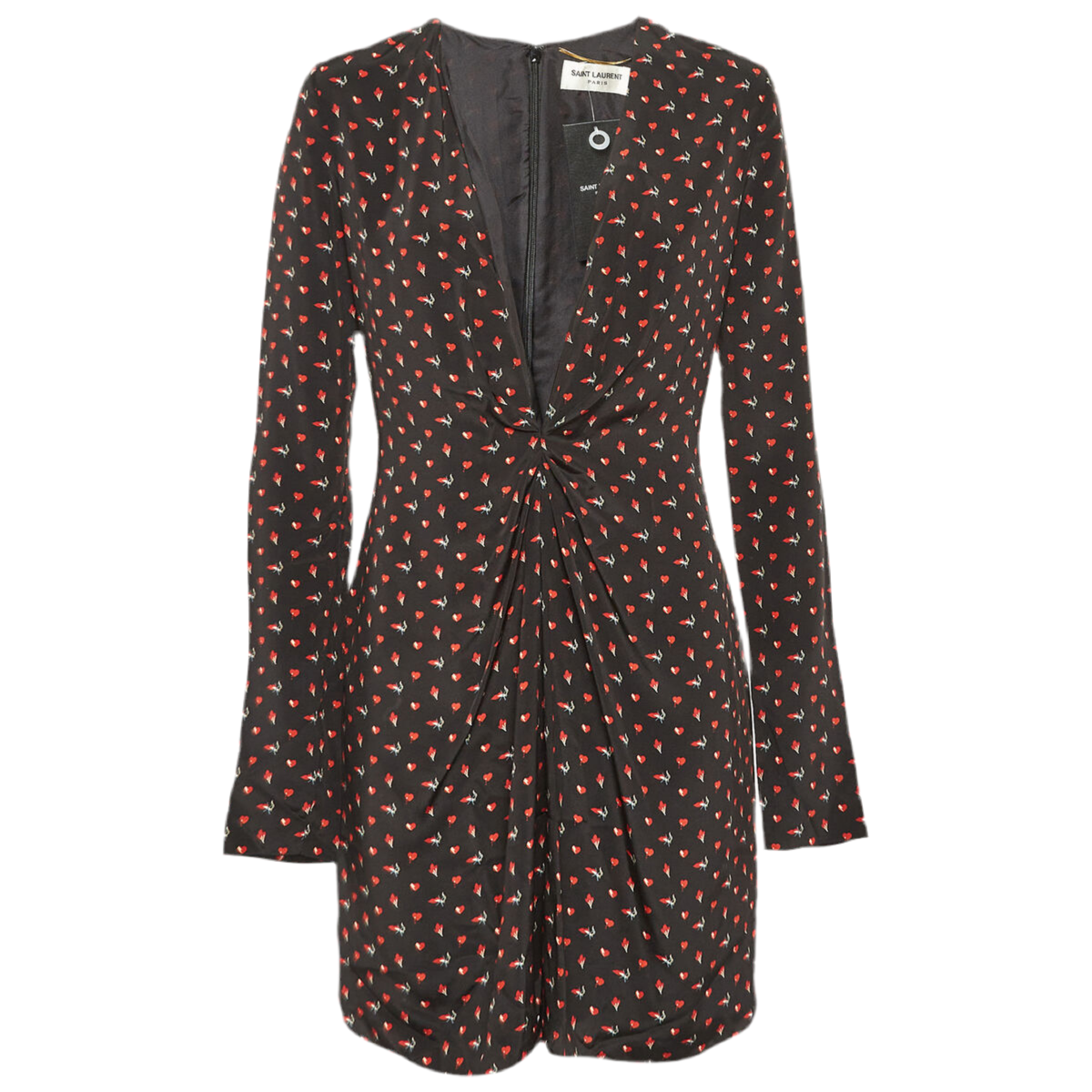 Expertly crafted from luxurious silk, the Saint Laurent V-neck Mini Dress features a bold black heart and fire print, adding a touch of edgy elegance to your wardrobe. With its flattering silhouette and high-quality construction, this dress is perfect for standing out at any event.