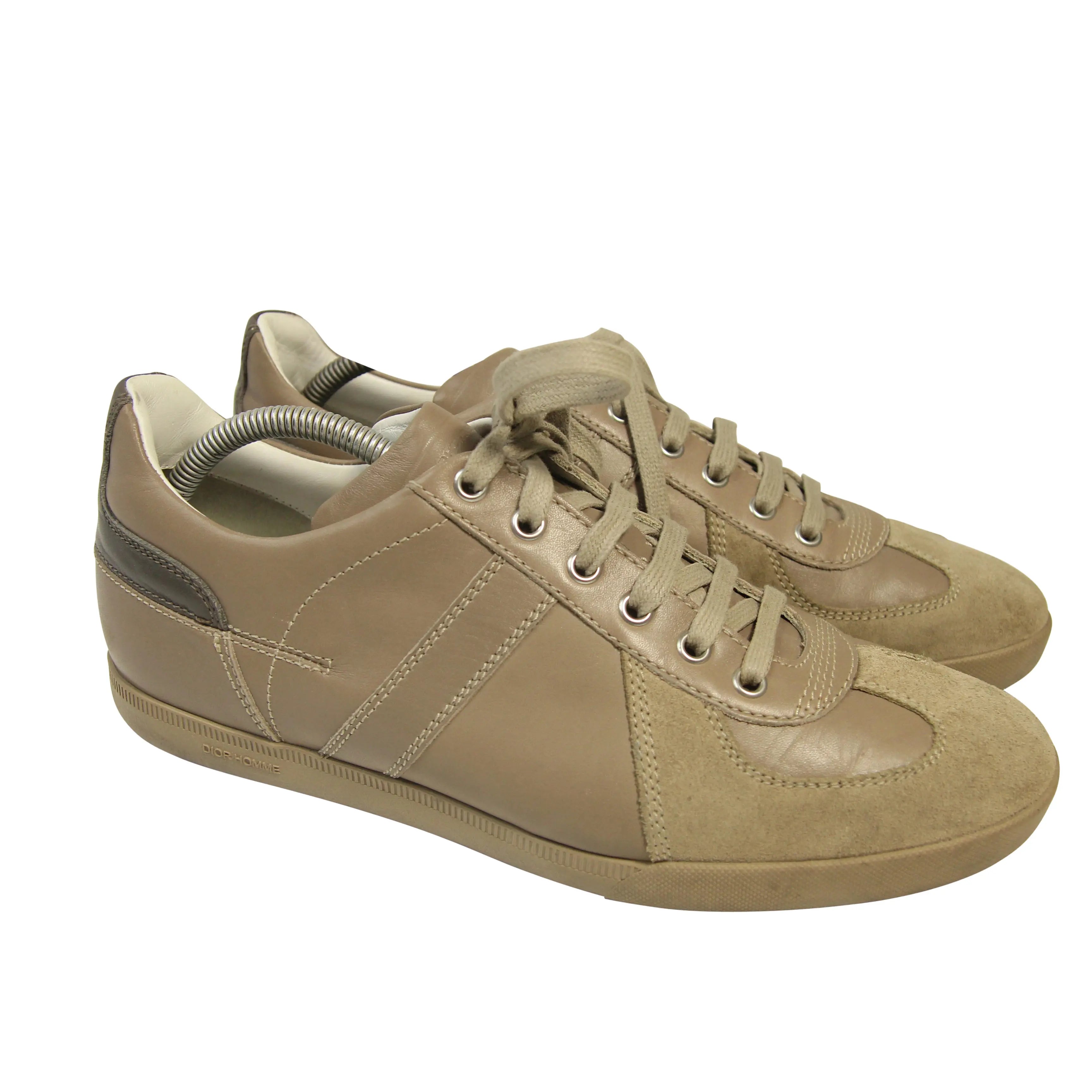Expertly crafted with a combination of high-quality leather and luxurious suede, these Dior sneakers are a must-have for any fashion-forward individual. The neutral beige color adds versatility to your wardrobe while the comfortable design provides long-lasting wear. Elevate your style with these elegant and sophisticated sneakers.