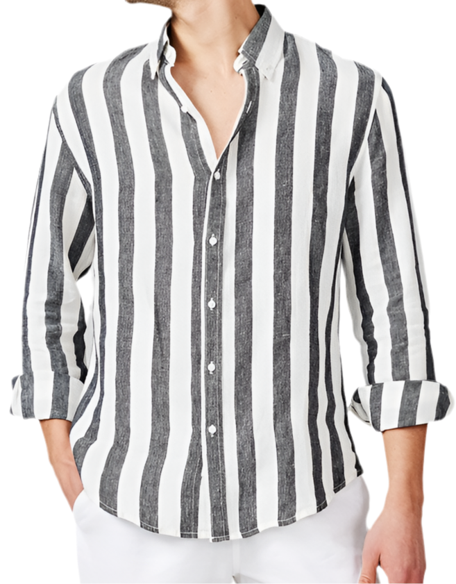 This Vacay Linen White and Gray Stripped Button Up Shirt is the perfect addition to your summer wardrobe. Made with high-quality linen, it offers a breathable and lightweight feel for ultimate comfort. The classic striped design and button-up style give it a timeless look, making it the ideal choice for any vacation or casual outing.