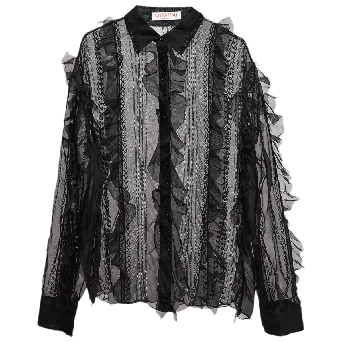 Valentino Black Beads Embroidered Organza Ruffle Detail Shirt