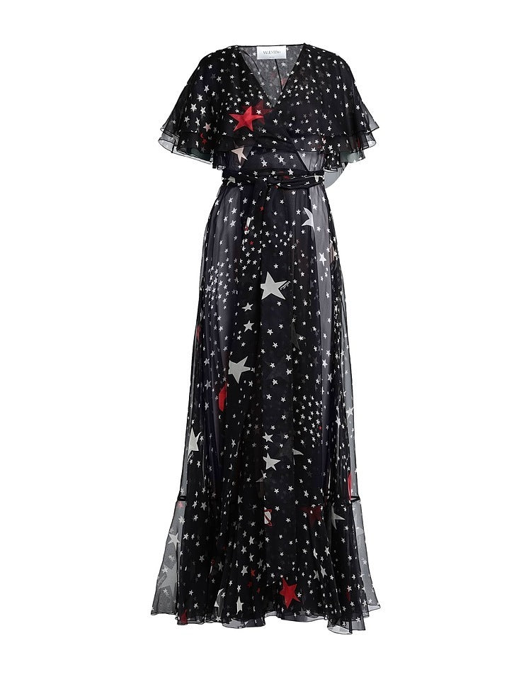 This Valentino Stars Gown/Dress exudes luxury and elegance. Crafted with exquisite care and attention to detail, it features stunning stars throughout the design. Made to impress, this gown/dress is perfect for any special occasion. Elevate your wardrobe with this show-stopping piece that is sure to turn heads.