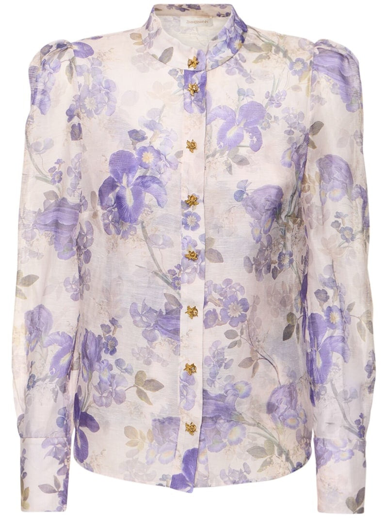 Get ready for spring with the stunning Zimmermann lilac floral print blouse. This stylish top features a beautiful floral print, perfect for adding a pop of color to your wardrobe. Made with high-quality fabric, this blouse offers both style and comfort. Upgrade your look with this must-have piece.
